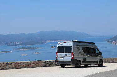 Die nächsten 280 Kilometer vergehen wie im Flug mit Tratschen und aus dem Fenster gucken. Schon stehen wir an der Einfahrt zum Camping Rubina Resort. Dort werde ich schon erwartet und wirklich sehr nett begrüßt. Wir dürfen uns einen Platz aussuchen – die Wahl fällt auf die erste Reihe hinter dem Mäuerchen zum Strand. Logo!
