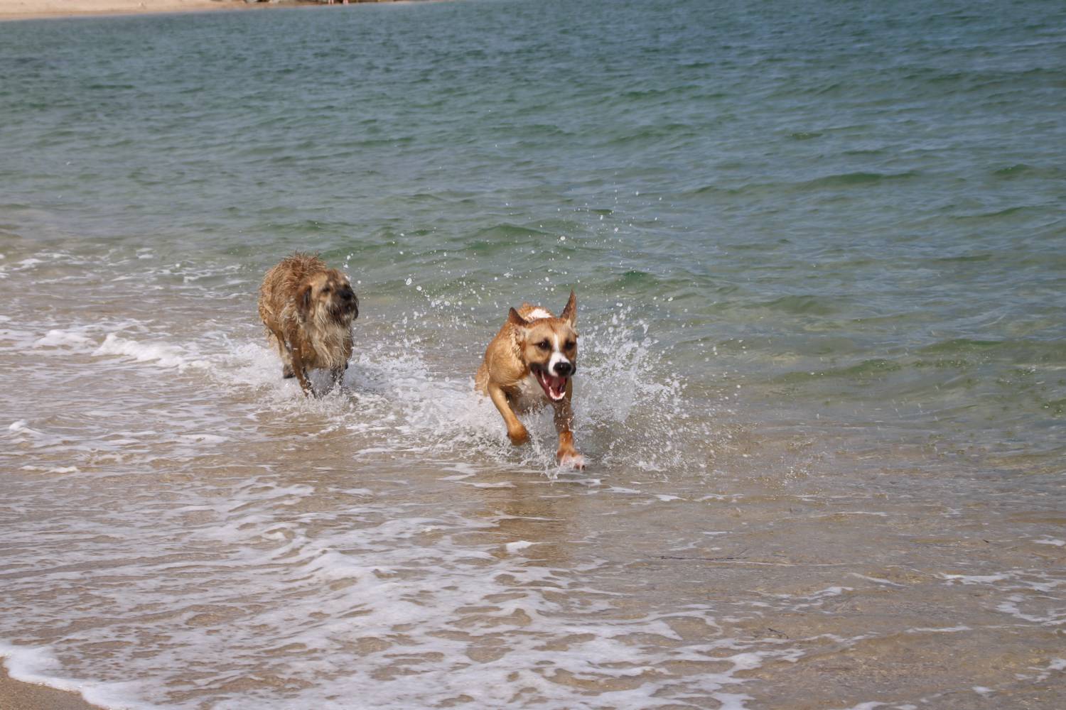 Für die Kids gibt es einen Spielplatz und einen mit Oleander eingerahmten Kletterseil-Garten. Der Camping Supermarkt ist gut bestückt, in der Bäckerei verlocken die Croissants zu einem ausgiebigen Frühstück. Im Cafe gleich daneben schnell einen Espresso an der Bar und dann die wenigen Meter zum breiten, langen Sandstrand. Den bummeln wir mit den Schuhen in der Hand entlang und freuen uns am Doggy-Beach über die ausgelassen tollenden Hunde.