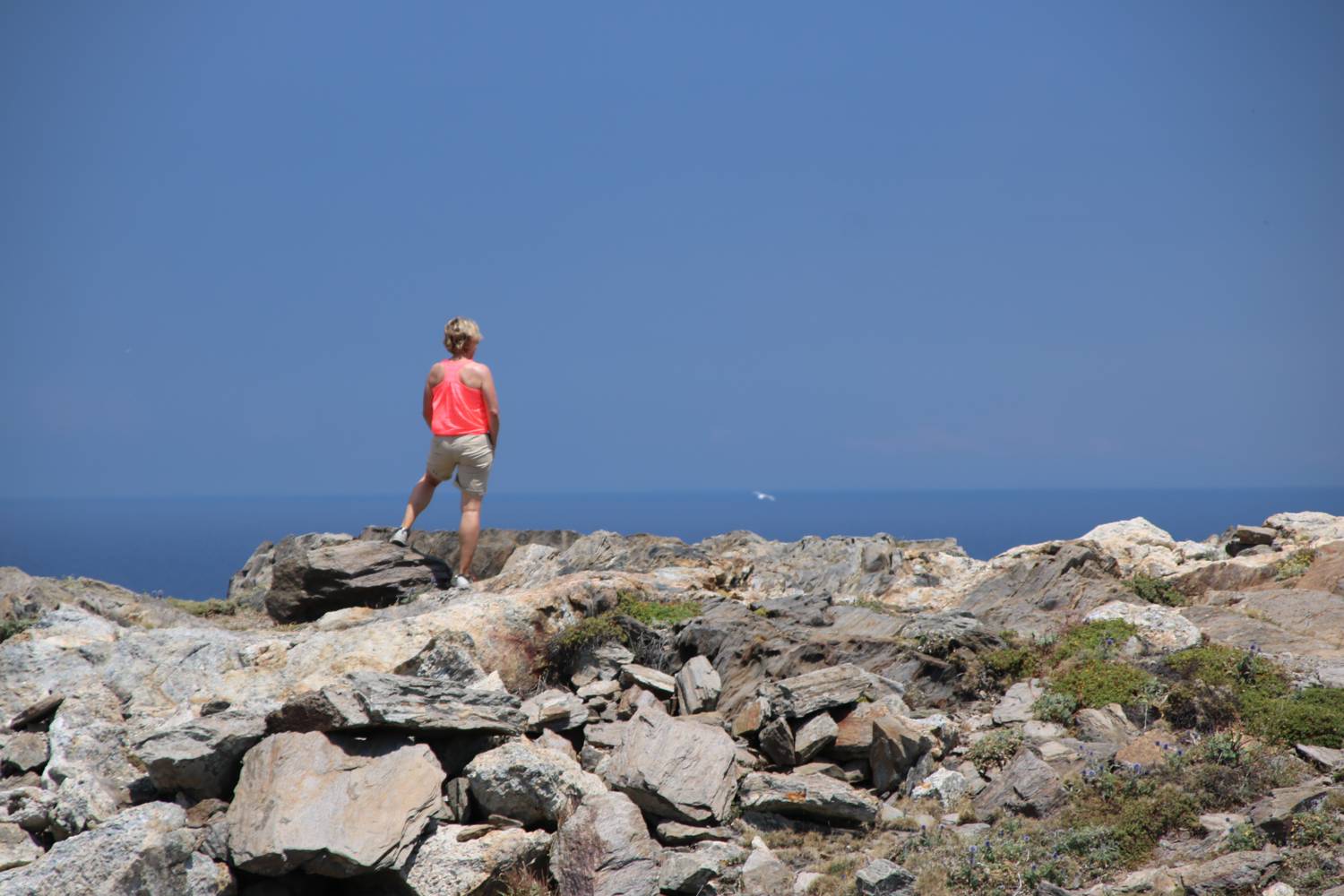 Den Weg kann man gar nicht verfehlen, auch wenn uns nur ab und zu ein anderer Wanderer begegnet. Schließlich tauchen die Bucht vom Cap de Creus und das Cap selber auf. Ein letzter Anstieg – wir haben es geschafft. Am Cap laden gleich zwei wirklich nette, kleine Restaurants zum Verweilen ein. Wir entscheiden uns für das zweite und erfreuen uns an dem gut gelaunten Senor de la casa. Der plaudert begeistert über seinen Wein, mixt mir meinen „cafe corto con mucho leche“ und auch das Essen sieht köstlich aus.